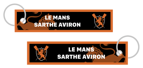 Porte-clés en tissu avec votre logo en couleur imprimé sur deux côtés.