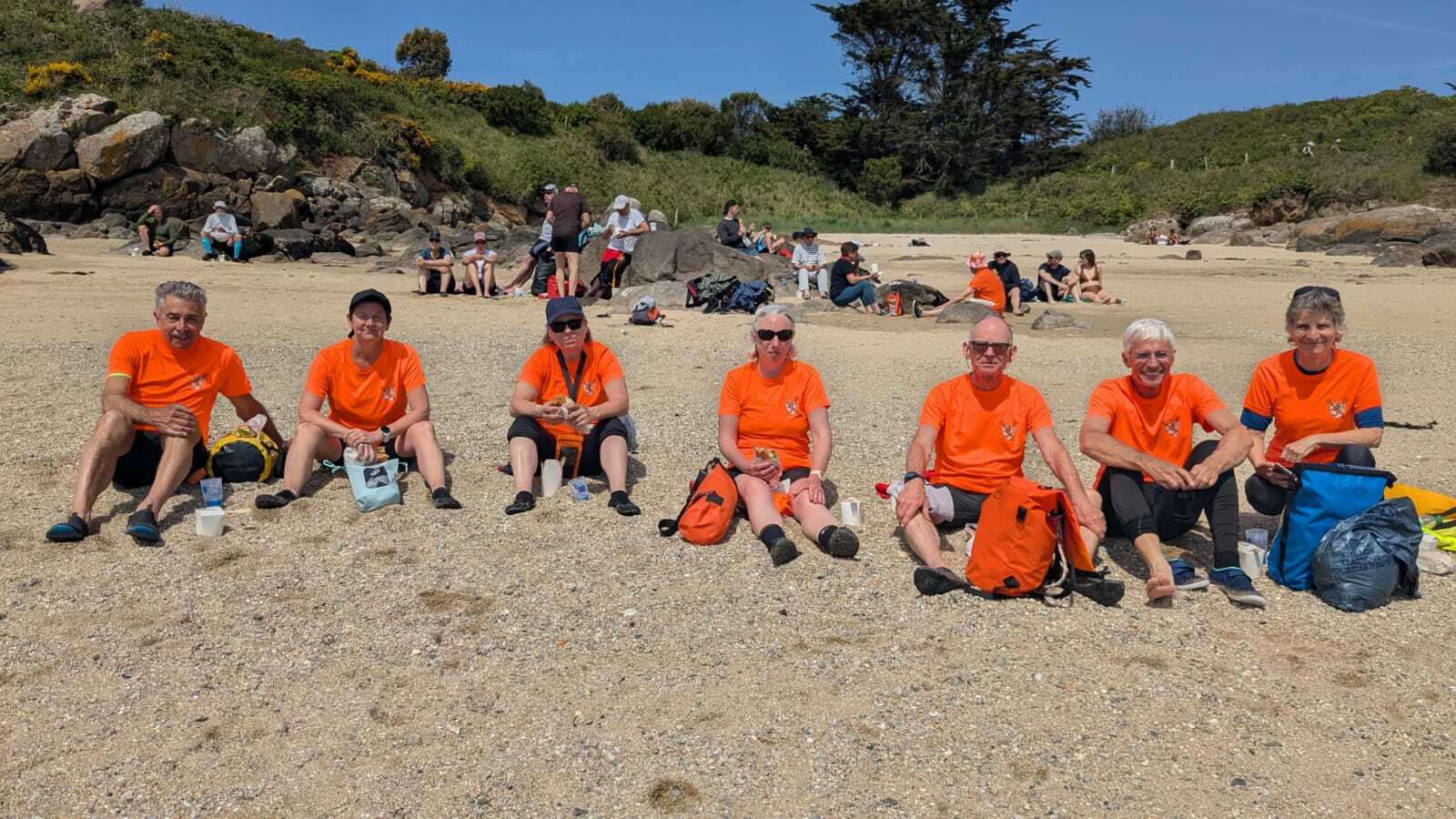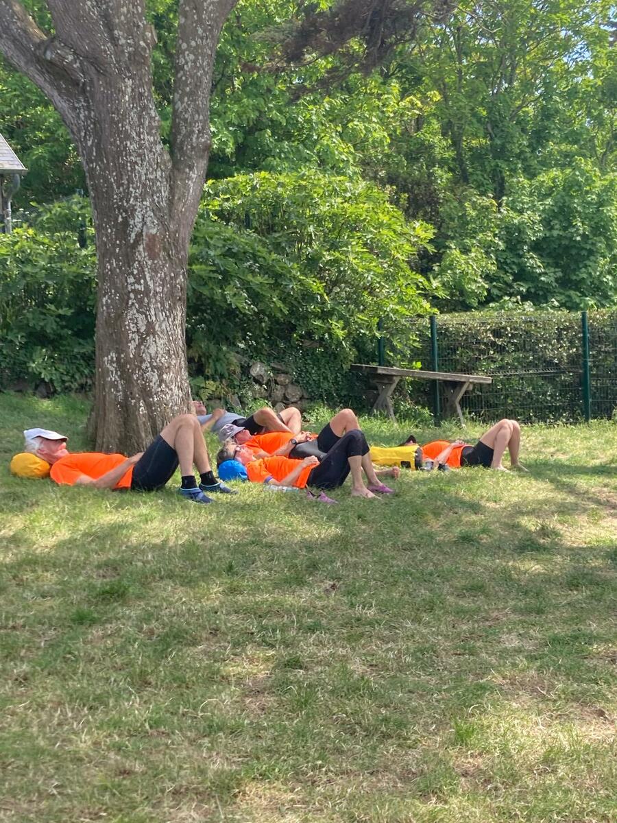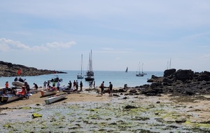 Le staff de l'Aviron Granvillais nous attendait sur la plage avec apéro, sandwichs, tartelettes. Après avoir avalé ce copieux repas, nous avons fait un petit tour sur cette île magnifique et profité d'une petite sieste bien méritée à l'ombre des pins.